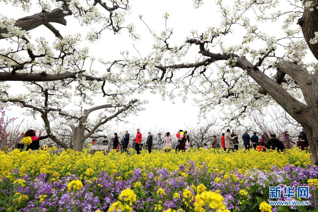 4月5日,游客在河北省石家莊晉州市周家莊鄉(xiāng)梨園內踏青。