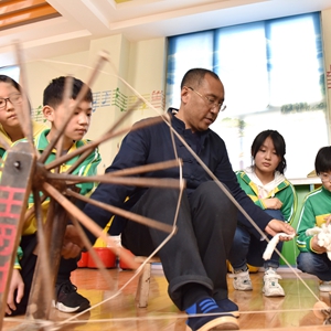 4月7日,威縣土布紡織技藝傳承人高慶海在威縣第四小學(xué)向?qū)W生演示老粗布紡織技藝。近年來,河北省邢臺(tái)市威縣積極開展“非遺傳承進(jìn)校園”活動(dòng),將當(dāng)?shù)靥厣沁z項(xiàng)目引入學(xué)校課堂,讓學(xué)生近距離感受民間傳統(tǒng)技藝的魅力,促進(jìn)非遺文化的保護(hù)和傳承。新華社記者 朱旭東 攝