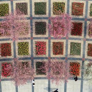 4月8日拍攝的石家莊市植物園內(nèi)的郁金香展(無人機照片)。