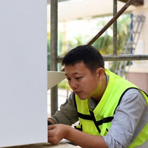 4月10日,工人在布置主會(huì)場(chǎng)室外綠植。
