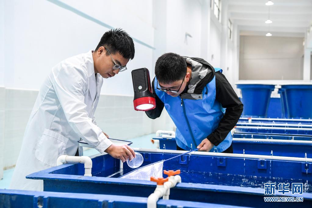 大藤峽魚(yú)類增殖放流站位于廣西桂平市大藤峽水利樞紐南木江副壩旁,是目前珠江流域規(guī)模最大的魚(yú)類增殖放流站,主要承擔(dān)野生、珍稀魚(yú)類增殖繁育、保護(hù)、救治等職能,年最大放流規(guī)模約358萬(wàn)尾,其中珍稀魚(yú)類98萬(wàn)尾。目前,大藤峽魚(yú)類增殖放流站的工作人員正在進(jìn)行魚(yú)苗繁育工作。