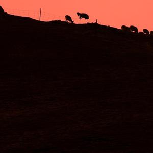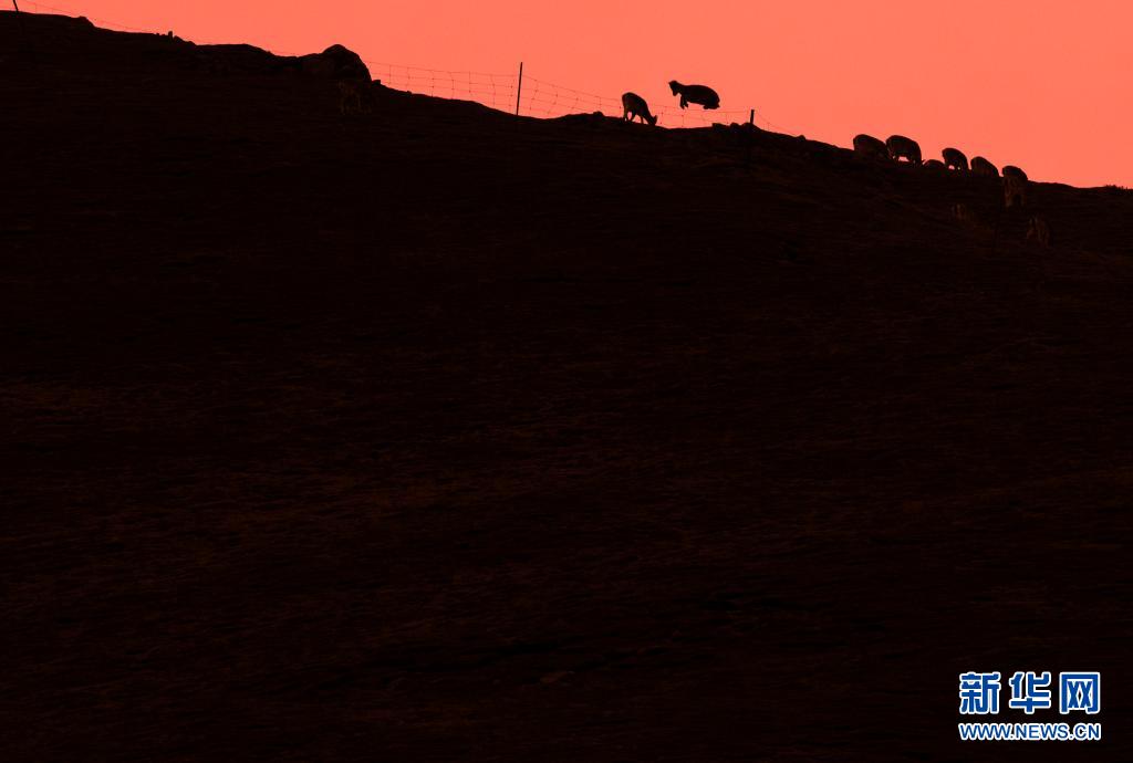 4月22日黃昏時分,在位于青海省海北藏族自治州的祁連山國家公園油葫蘆保護分區(qū),一頭巖羊高高躍起跨越障礙。