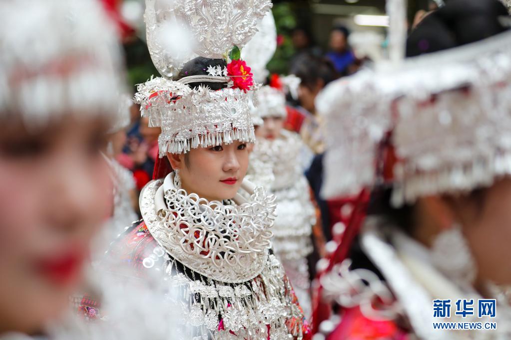 今年姊妹節(jié)前夕,母親張?jiān)雅畠菏⒀b的銀飾拿到銀飾店里進(jìn)行清洗,希望女兒能在盛裝巡演上展示最美的一面。4月25日姊妹節(jié)當(dāng)天,張佳麗早早起床,在母親和同學(xué)的幫助下,開始化妝、穿衣、佩戴銀飾,一直忙到9點(diǎn)才準(zhǔn)備完畢。身著盛裝站在巡演隊(duì)伍中,張佳麗說:“這是我們苗族同胞最大的節(jié)日,無論身處何地,我都會(huì)如約回家參加活動(dòng)!”