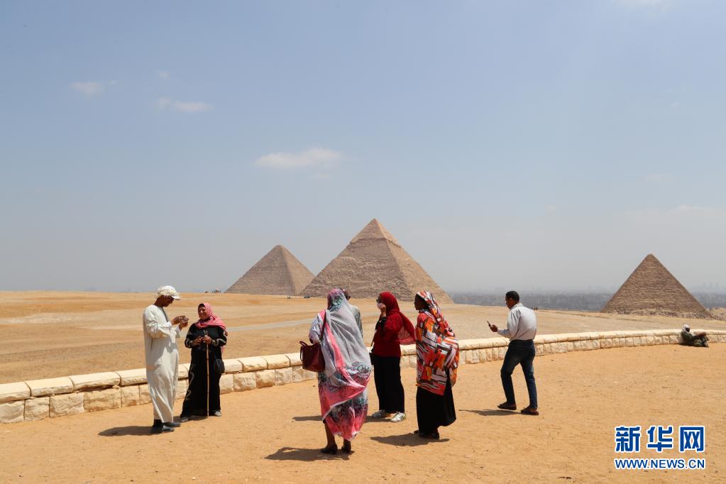 4月26日,游客在位于埃及吉薩省的金字塔群景區(qū)內(nèi)游玩。