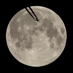 4月27日,一架飛機(jī)“飛過(guò)”法國(guó)巴黎上空的“超級(jí)月亮”(拼版照片)。新華社發(fā)(奧雷利安·莫里薩爾攝)