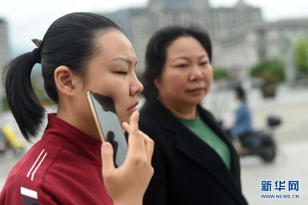 4月28日,葉景芬(前)和媽媽林鳳玉走在龍泉市街頭時(shí)接聽電話。新華社記者 韓傳號 攝