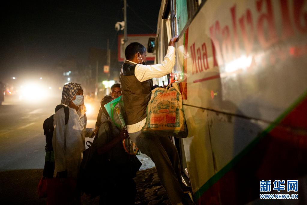 4月29日凌晨,人們?cè)谀岵礌柺锥技拥聺M都登上長(zhǎng)途客車,準(zhǔn)備在封禁措施實(shí)施前離開加德滿都返回家鄉(xiāng)。
