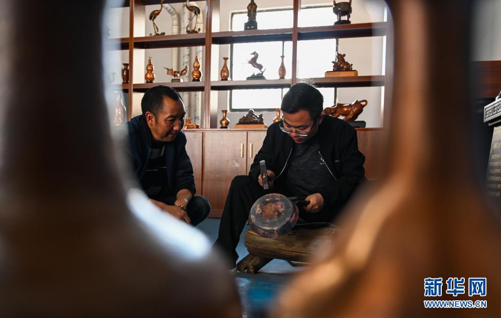 地處滇東北、烏蒙山腹地的云南會(huì)澤縣流傳著具有300多年歷史的斑銅制作工藝。斑銅工藝復(fù)雜,要采用高品位的銅為原料,經(jīng)過(guò)20余道工序制作而成。產(chǎn)品“妙在有斑,貴在渾厚”,風(fēng)格獨(dú)樹(shù)一幟。33歲的張偉是會(huì)澤“張氏斑銅”的第十三代傳人。自幼深受地域文化和家庭熏陶的他,大學(xué)畢業(yè)后,返鄉(xiāng)從事斑銅制作工作。在會(huì)澤古城的“銅匠街”,張偉創(chuàng)辦了斑銅傳習(xí)館,不斷研發(fā)斑銅新產(chǎn)品、傳承著這項(xiàng)非遺技藝?!鞍咩~是一種情感、一種文化,希望在我們這代人的努力下能夠更好地將它傳承下去,讓更多人了解斑銅的獨(dú)特魅力。”張偉說(shuō)。