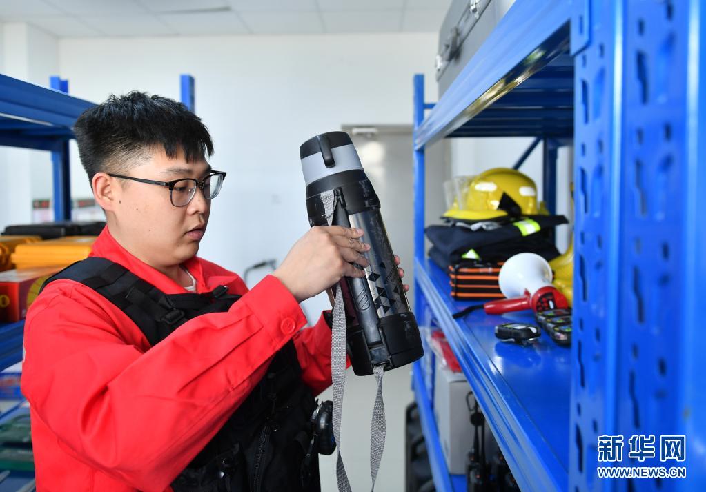 4月28日,巡線隊(duì)員曹碩進(jìn)行出發(fā)前的準(zhǔn)備工作。新華社記者 張博文 攝