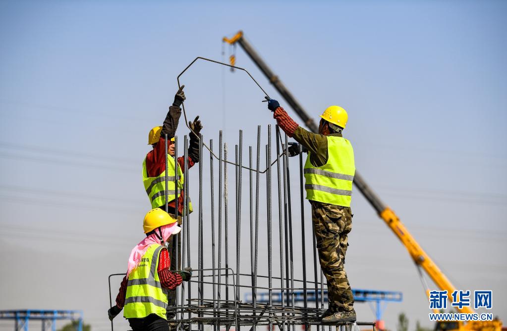 5月1日,寧夏銀川市經(jīng)濟技術開發(fā)區(qū)中環(huán)50GW(G12)太陽能級單晶硅材料智慧工廠項目的工人在現(xiàn)場作業(yè)。