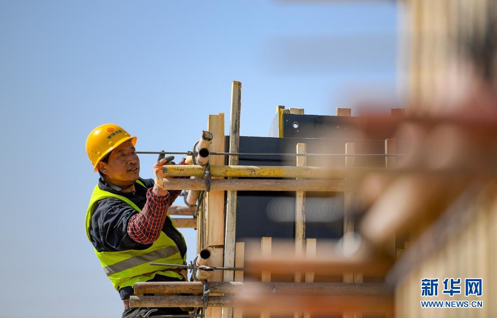 5月1日,寧夏銀川市經(jīng)濟(jì)技術(shù)開發(fā)區(qū)中環(huán)50GW(G12)太陽能級(jí)單晶硅材料智慧工廠項(xiàng)目的工人在現(xiàn)場作業(yè)。