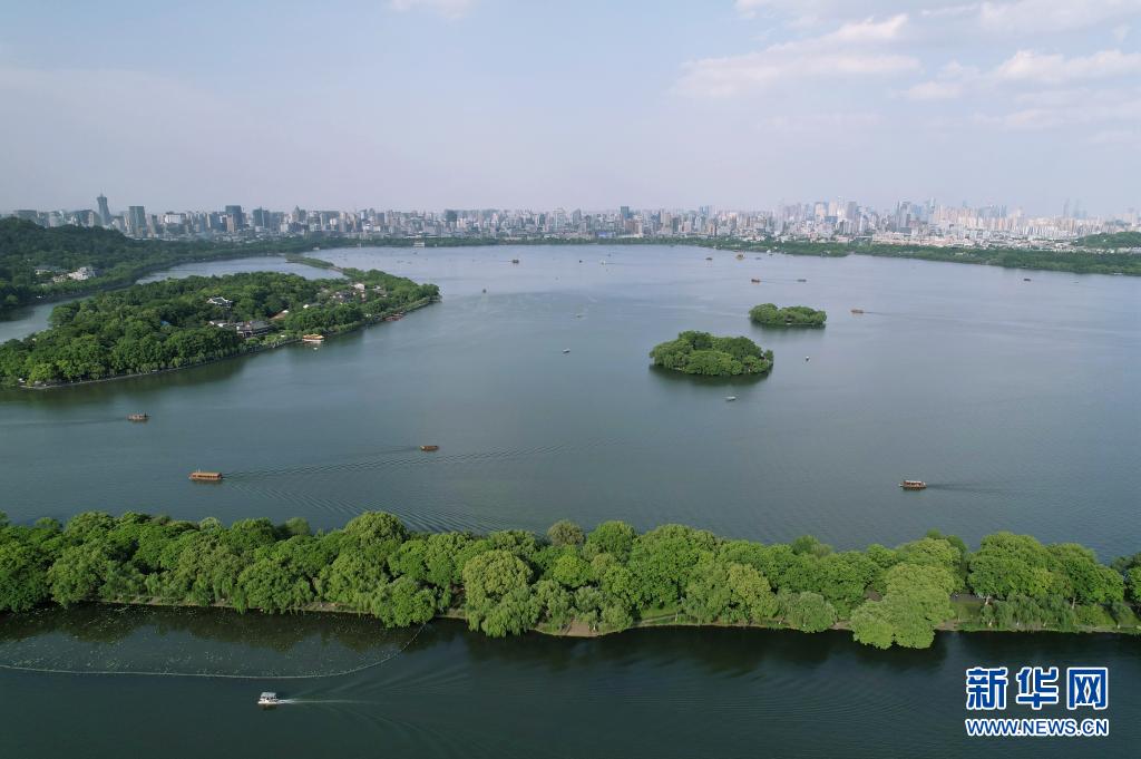 這是5月7日拍攝的杭州西湖景色(無人機照片)。