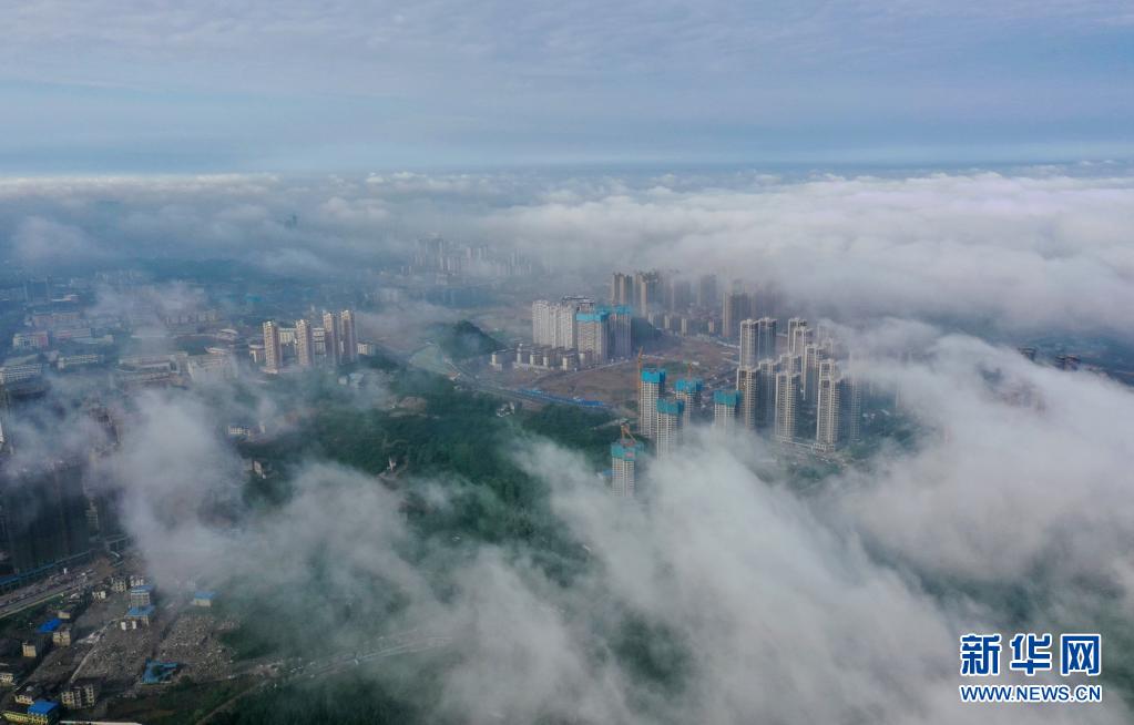 5月8日,貴陽(yáng)市觀山湖區(qū)的高樓被霧氣籠罩(無(wú)人機(jī)照片)。