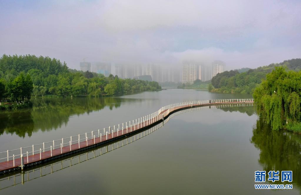 5月8日,貴陽市觀山湖區(qū)閱山湖公園景色怡人(無人機照片)。