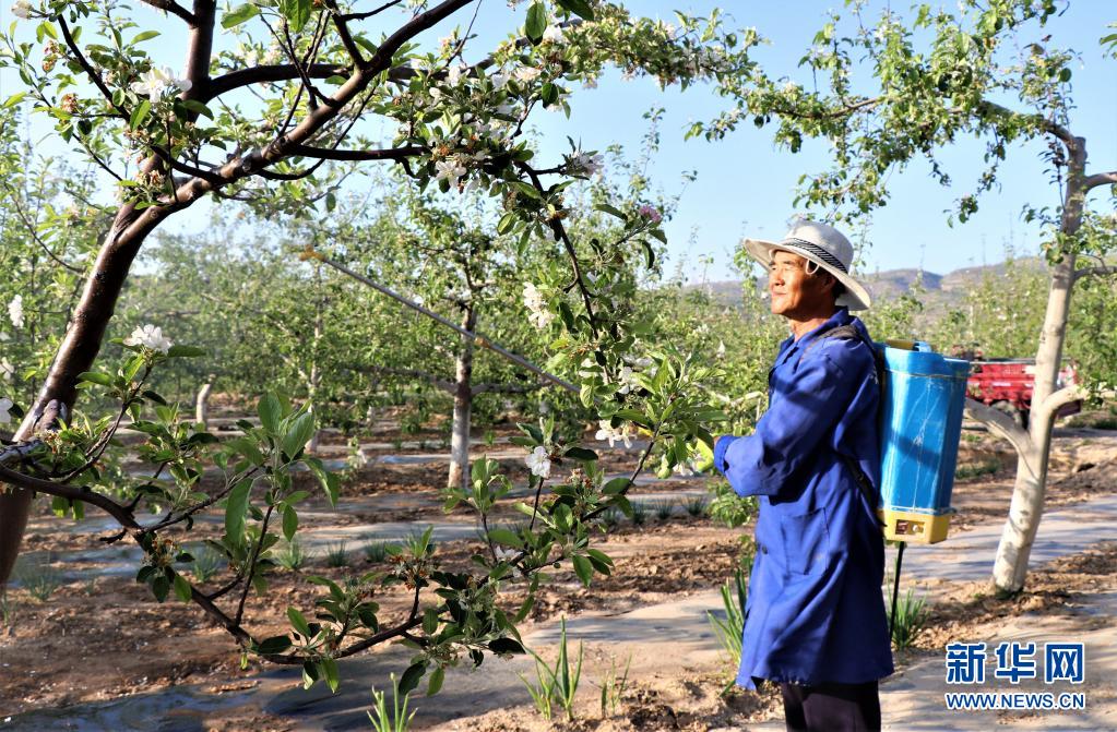 日前,隨著氣溫回升,甘肅省平?jīng)鍪徐o寧縣的百萬畝蘋果花相繼盛開,果農(nóng)在果園里疏花、噴藥,田間地頭一派繁忙景象。