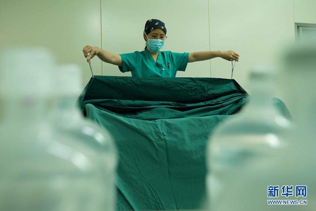 5月11日,河北省邢臺市巨鹿縣醫(yī)院手術(shù)室護(hù)士在做術(shù)前準(zhǔn)備。