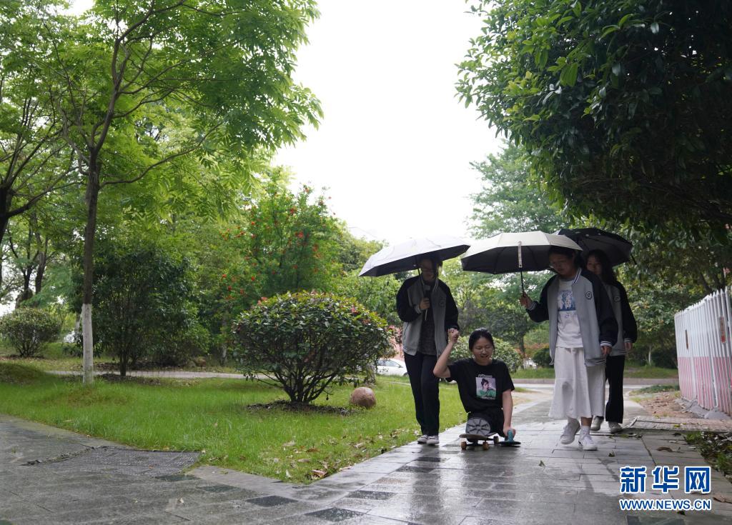 2021年5月10日,蔣張子怡(左二)和同學(xué)穿行在校園內(nèi)。
