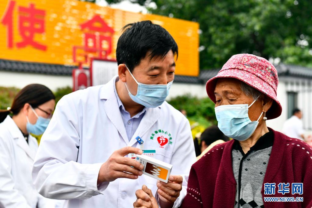 5月21日,在棗莊市臺兒莊區(qū)澗頭集鎮(zhèn)褚提樓村,“學(xué)黨史惠民”醫(yī)療小分隊為群眾開展送醫(yī)、送藥服務(wù)。