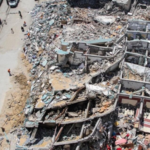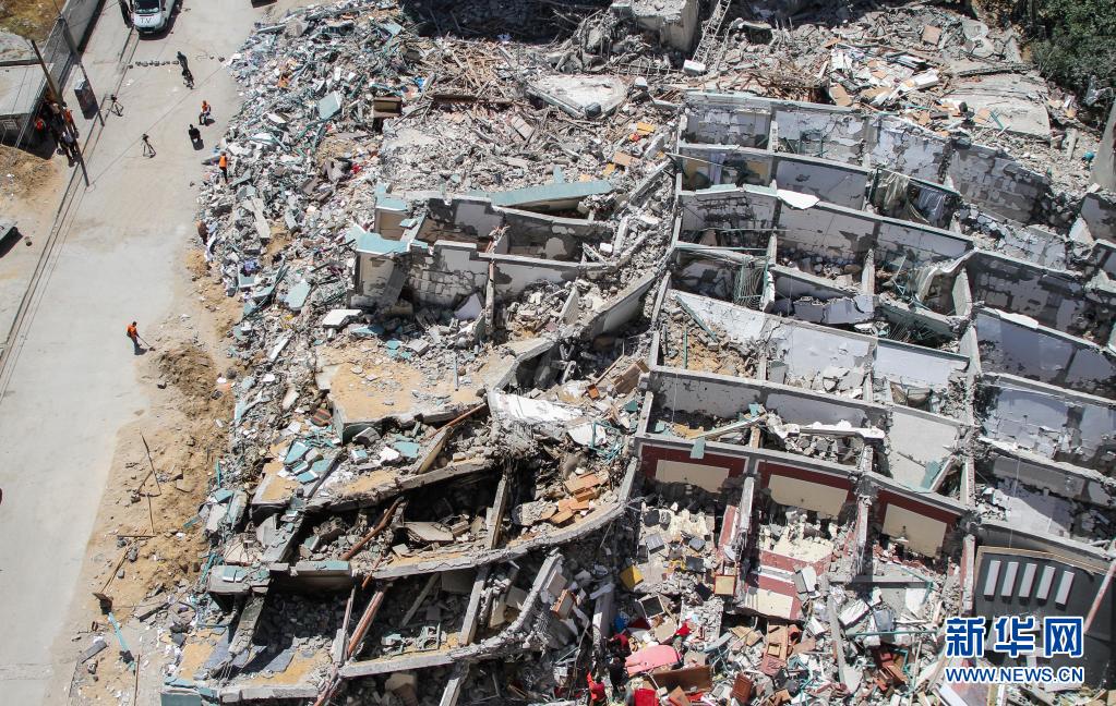 5月23日,巴勒斯坦人在加沙城走過遭以軍空襲損毀的賈拉塔。5月10日以來,以色列與加沙地帶武裝組織之間爆發(fā)嚴重沖突。20日晚,哈馬斯與以色列方面各自宣布,雙方已達成?;饏f議,停火從21日凌晨開始。新華社發(fā)(里澤克·阿卜杜勒·賈瓦德攝)