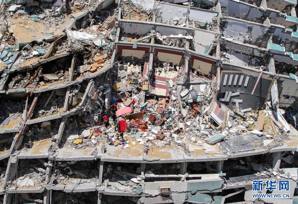 這是5月23日在加沙城拍攝的遭以軍空襲損毀的賈拉塔。5月10日以來,以色列與加沙地帶武裝組織之間爆發(fā)嚴(yán)重沖突。20日晚,哈馬斯與以色列方面各自宣布,雙方已達(dá)成停火協(xié)議,?;饛?1日凌晨開始。新華社發(fā)(里澤克·阿卜杜勒·賈瓦德攝)