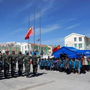 當(dāng)日是青海果洛瑪多縣花石峽鎮(zhèn)藏文中心寄宿制小學(xué)震后復(fù)學(xué)第一天,學(xué)校邀請他以“國家、奮斗、團結(jié)”為主題,和孩子們進行交流。