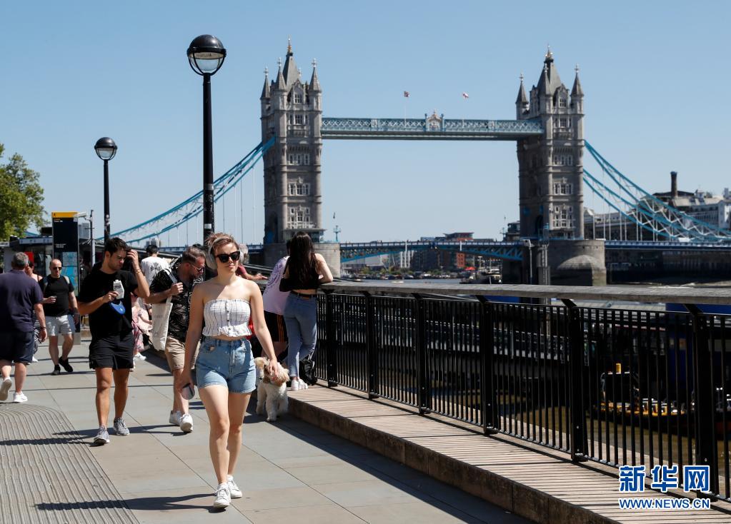 6月1日,人們在英國倫敦的泰晤士河北岸行走。
