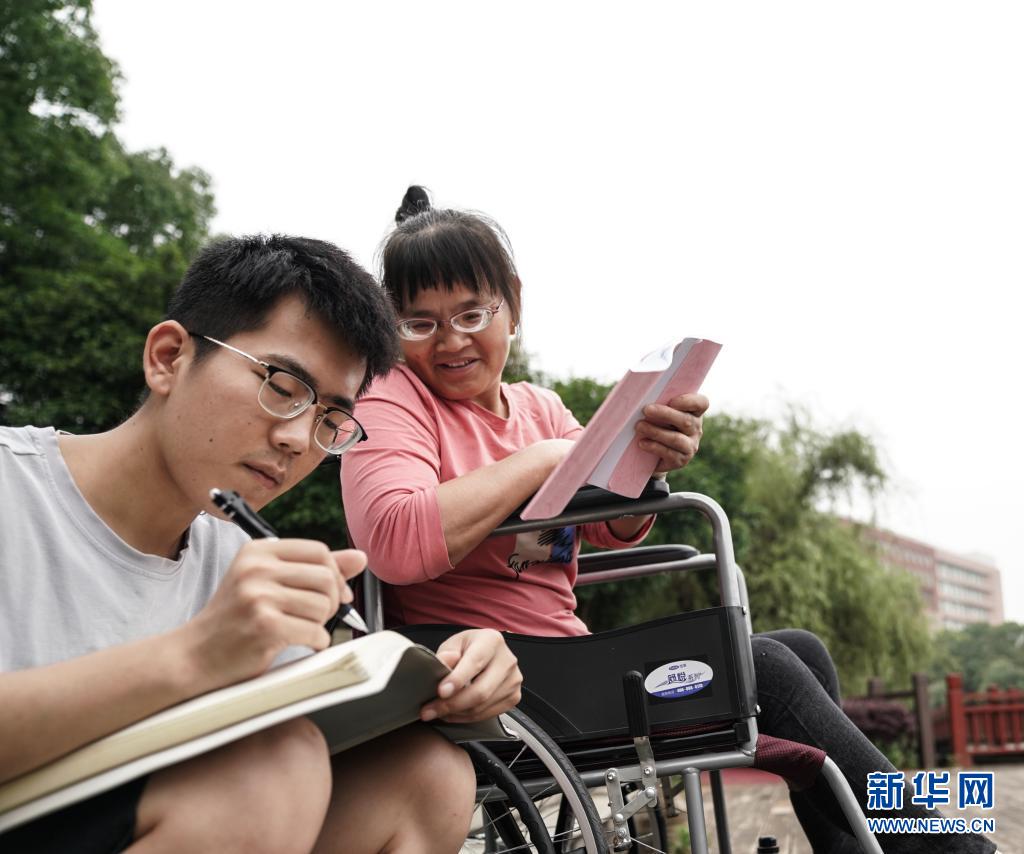 6月2日,趙建軍和母親一起在校園內看書。新華社記者胡晨歡攝