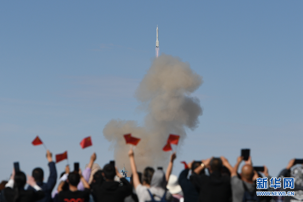 6月17日,搭載著神舟十二號(hào)載人飛船的長(zhǎng)征二號(hào)F遙十二運(yùn)載火箭在酒泉衛(wèi)星發(fā)射中心點(diǎn)火升空。新華社記者 劉磊 攝