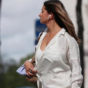 6月17日,一名女子手拎口罩走在法國(guó)巴黎香榭麗舍大街上。