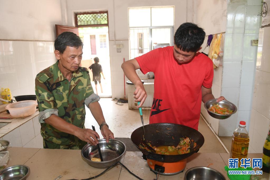 在廣西上思縣那琴鄉(xiāng)中心小學逢通村教學點,梁志雄老師在教一名學生盛菜(6月16日攝)。新華社記者 陸波岸 攝