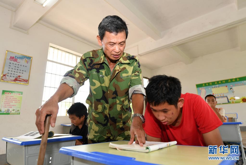 在廣西上思縣那琴鄉(xiāng)中心小學(xué)逢通村教學(xué)點(diǎn),梁志雄老師在輔導(dǎo)學(xué)生(6月16日攝)。新華社記者 陸波岸 攝