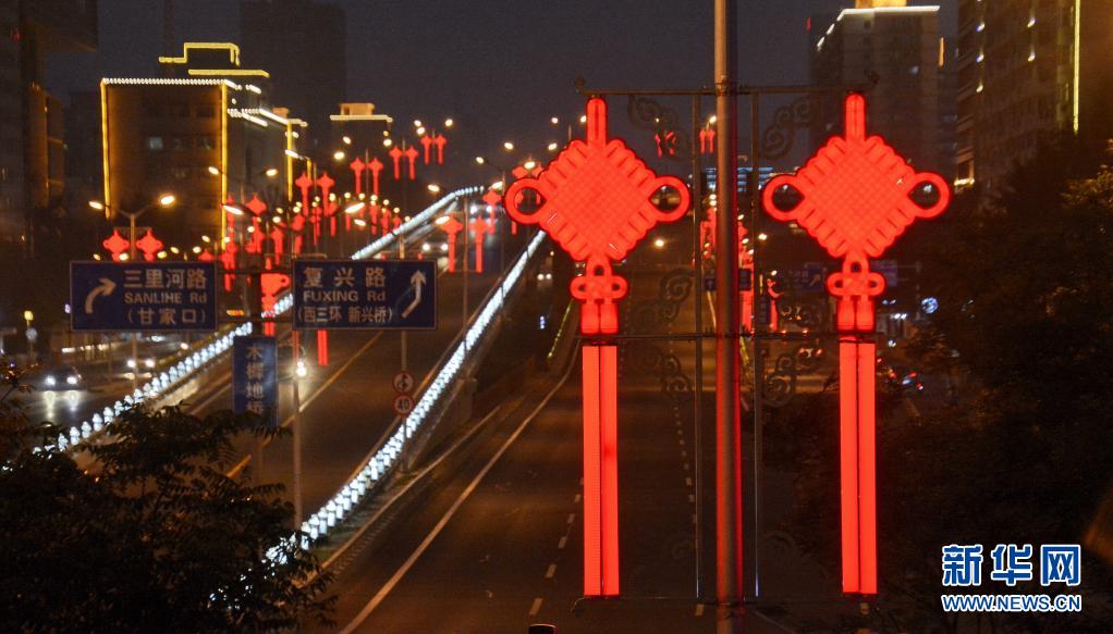 彩燈裝扮的北京市復(fù)興路(6月28日攝)。