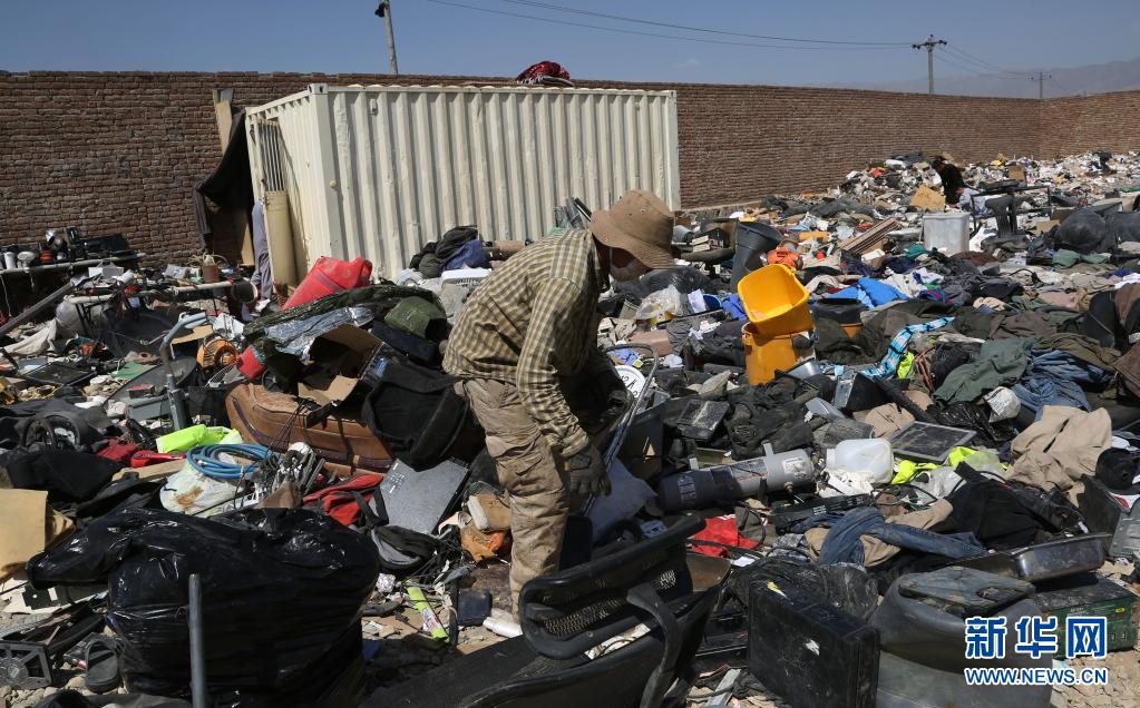 7月3日,在阿富汗帕爾萬(wàn)省的巴格拉姆空軍基地附近,當(dāng)?shù)鼐用裨诿儡娺z留下的物品中回收廢舊物。