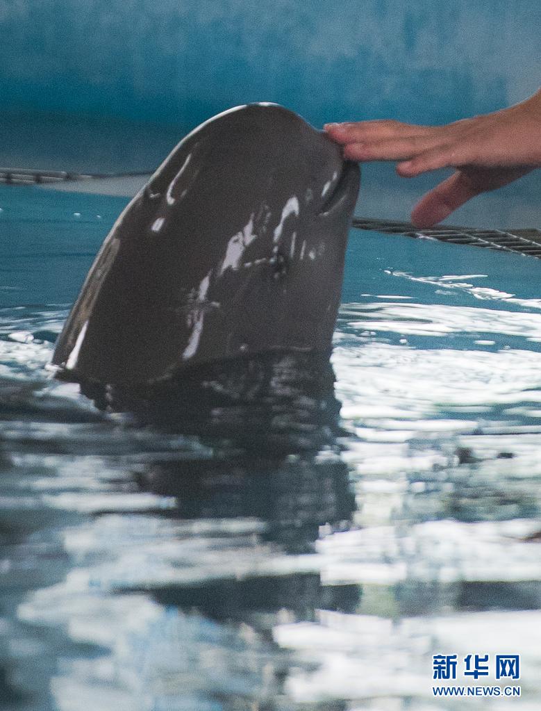 7月5日,中科院水生所白鱀豚館飼養(yǎng)員對(duì)長江江豚進(jìn)行訓(xùn)練。新華社記者肖藝九攝