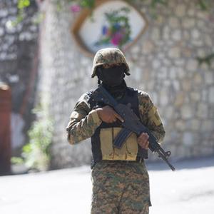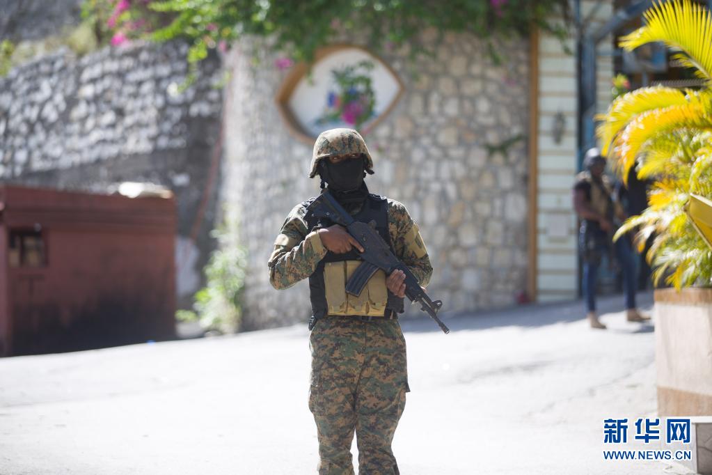 7月7日,在海地太子港,一名士兵在海地總統莫伊茲的住所旁執(zhí)勤。