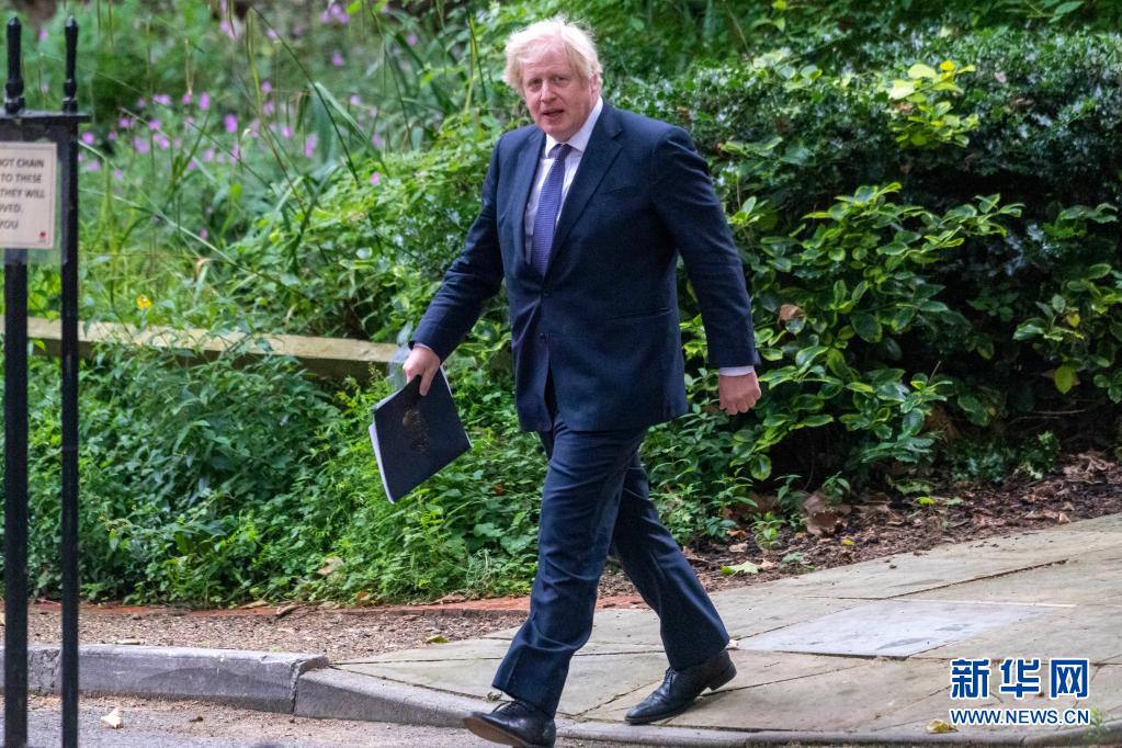 7月12日,在英國(guó)倫敦,英國(guó)首相約翰遜在參加疫情發(fā)布會(huì)后返回首相府。