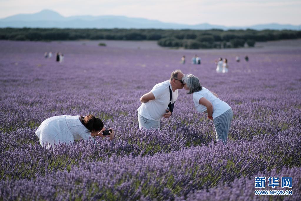 7月13日,人們在西班牙卡斯蒂利亞-拉曼查自治區(qū)布里韋加的薰衣草田拍照。
