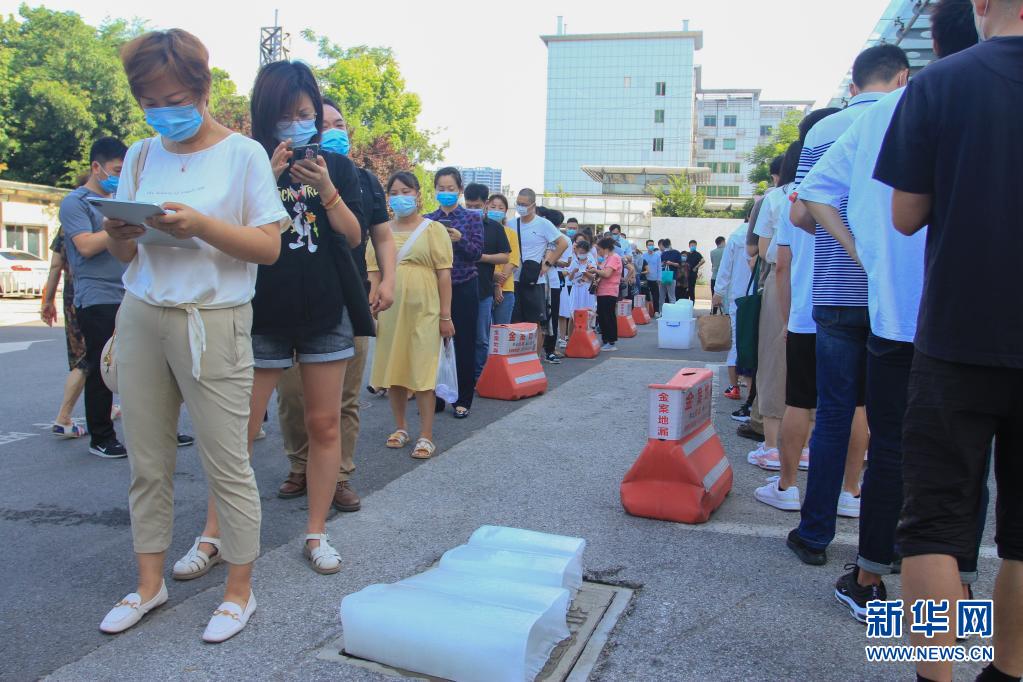 江蘇省南京市于7月21日開始對全市常住人口、外來人員開展全員核酸檢測。目前正值盛夏,氣溫較高,在南京市第一醫(yī)院河西院區(qū)核酸檢測點,工作人員專門為排隊等候的市民準備了冰塊降溫。