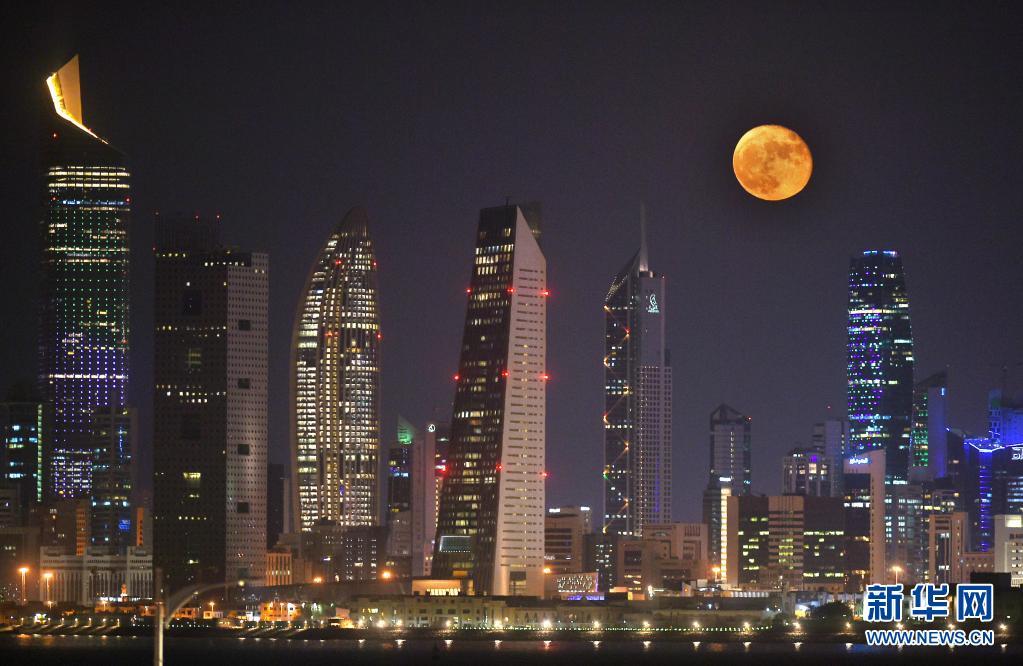 這是7月25日晚在科威特首都科威特城拍攝的月亮。