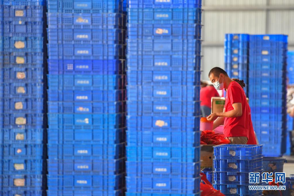 8月1日,在位于長沙市望城區(qū)的湖南高星物流園,蔬菜倉庫的工作人員將蔬菜裝筐。