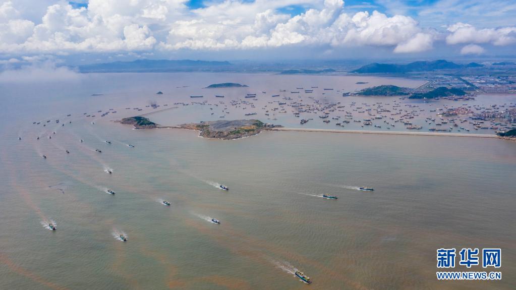 當日中午12時,浙江沿海地區(qū)的部分漁船結(jié)束伏季休漁,駛出漁港,奔赴漁場。