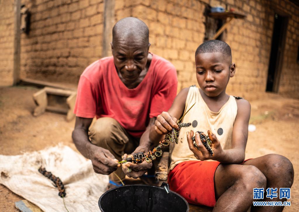 對(duì)于生活在糧食匱乏狀況下的居民,蟲子不僅意味著食物可以果腹,也是財(cái)富的來源。在雨季,來自首都班吉的經(jīng)銷商每天都騎著摩托車來到當(dāng)?shù)?,收購?dāng)?shù)鼐用褡淼拿x,然后賣到首都消費(fèi)者手里。