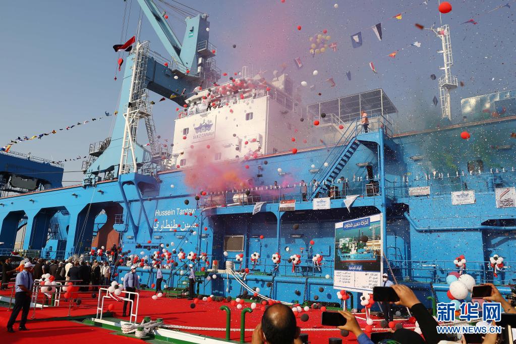當(dāng)日,埃及蘇伊士運河管理局在伊斯梅利亞舉行儀式,迎接最新購入的“侯賽因·坦塔維”號大型絞吸式挖泥船。