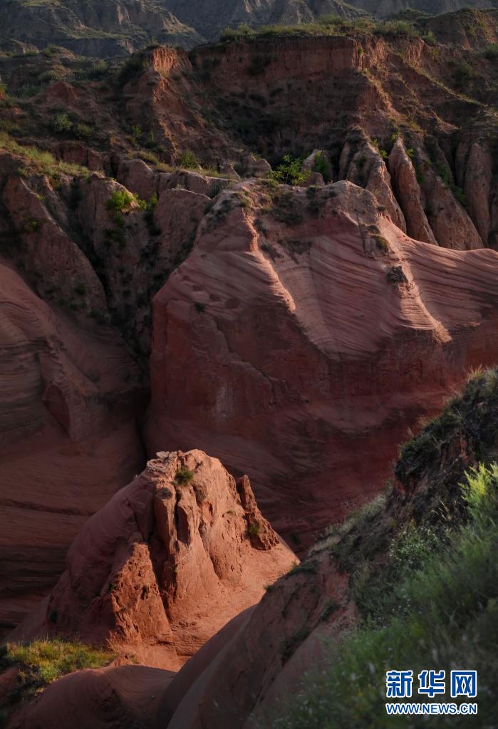8月6日,朝霞映照下的靖邊縣龍洲鎮(zhèn)波浪谷丹霞景區(qū)。