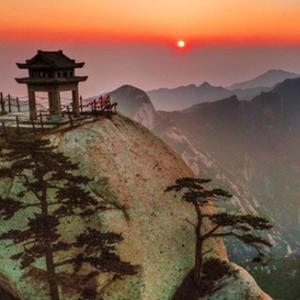 晨曦初露,位于陜西省渭南市的華山景區(qū)沐浴在霞光之中,景色壯美。