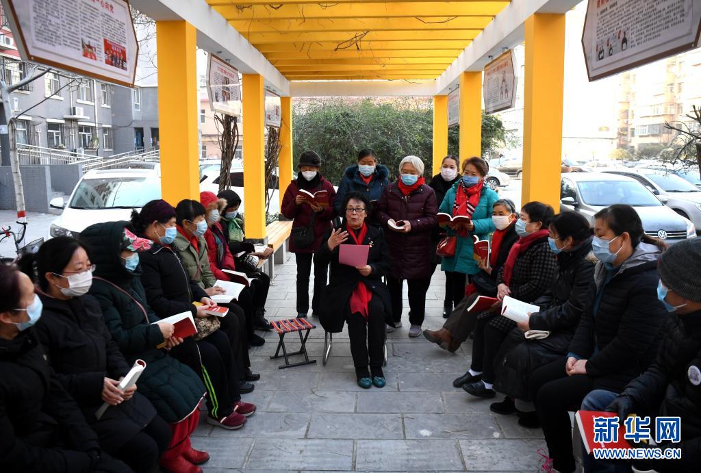 2020年12月22日,河北省石家莊市裕華區(qū)建南社區(qū)年過(guò)八十的黨員靳國(guó)芳為社區(qū)居民宣講黨的十九屆五中全會(huì)精神。新華社記者 王曉 攝