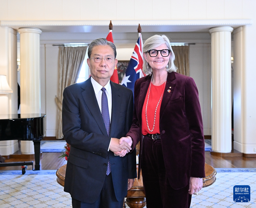 应澳大利亚联邦议会参议长莱恩斯和众议长迪克邀请,全国人大常委会委员长赵乐际11月22日至25日对澳大利亚进行正式友好访问。这是11月24日,赵乐际在堪培拉会见澳大利亚总督莫斯廷。