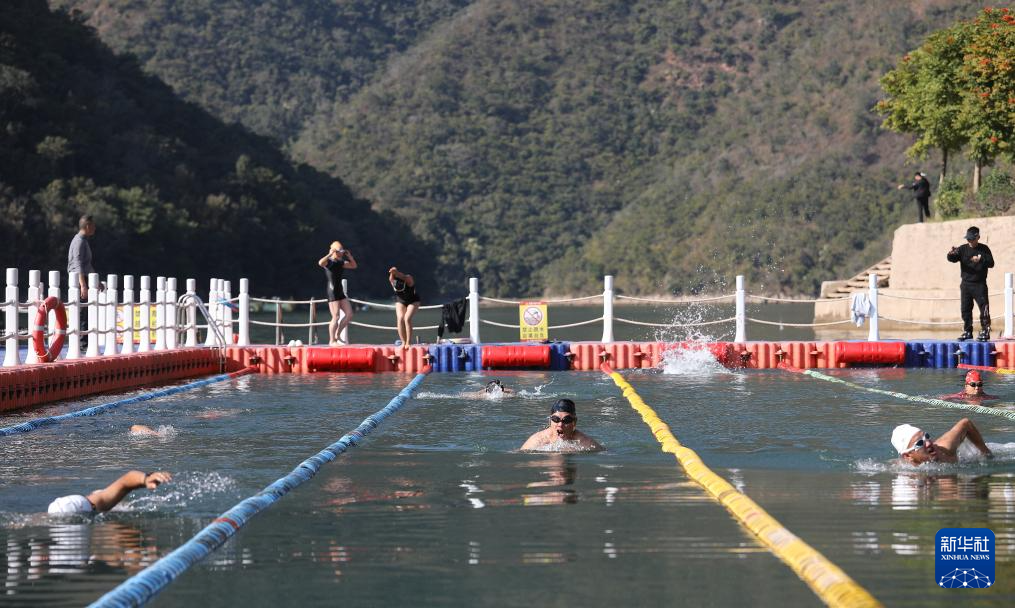 12月25日,游泳爱好者在游泳(无人机照片)。