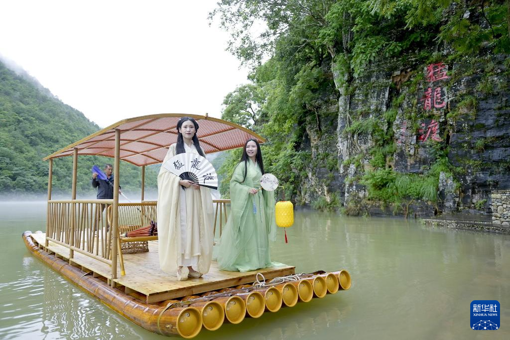 7月27日,游客在澜沧江游玩体验古风旅拍。