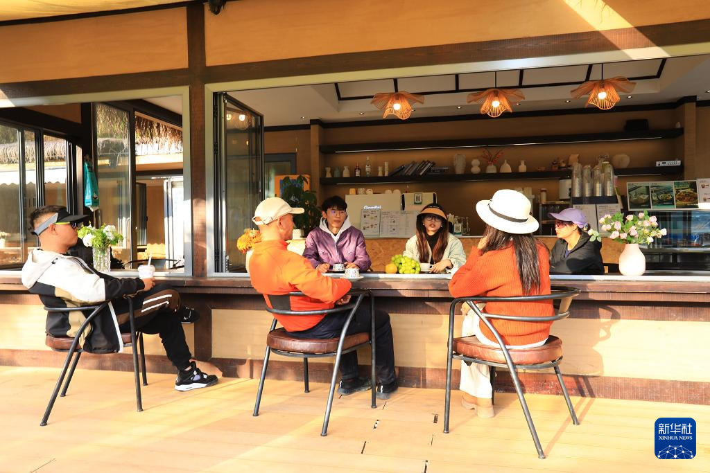 12月25日,游客在猛龙渡一家咖啡馆休闲。